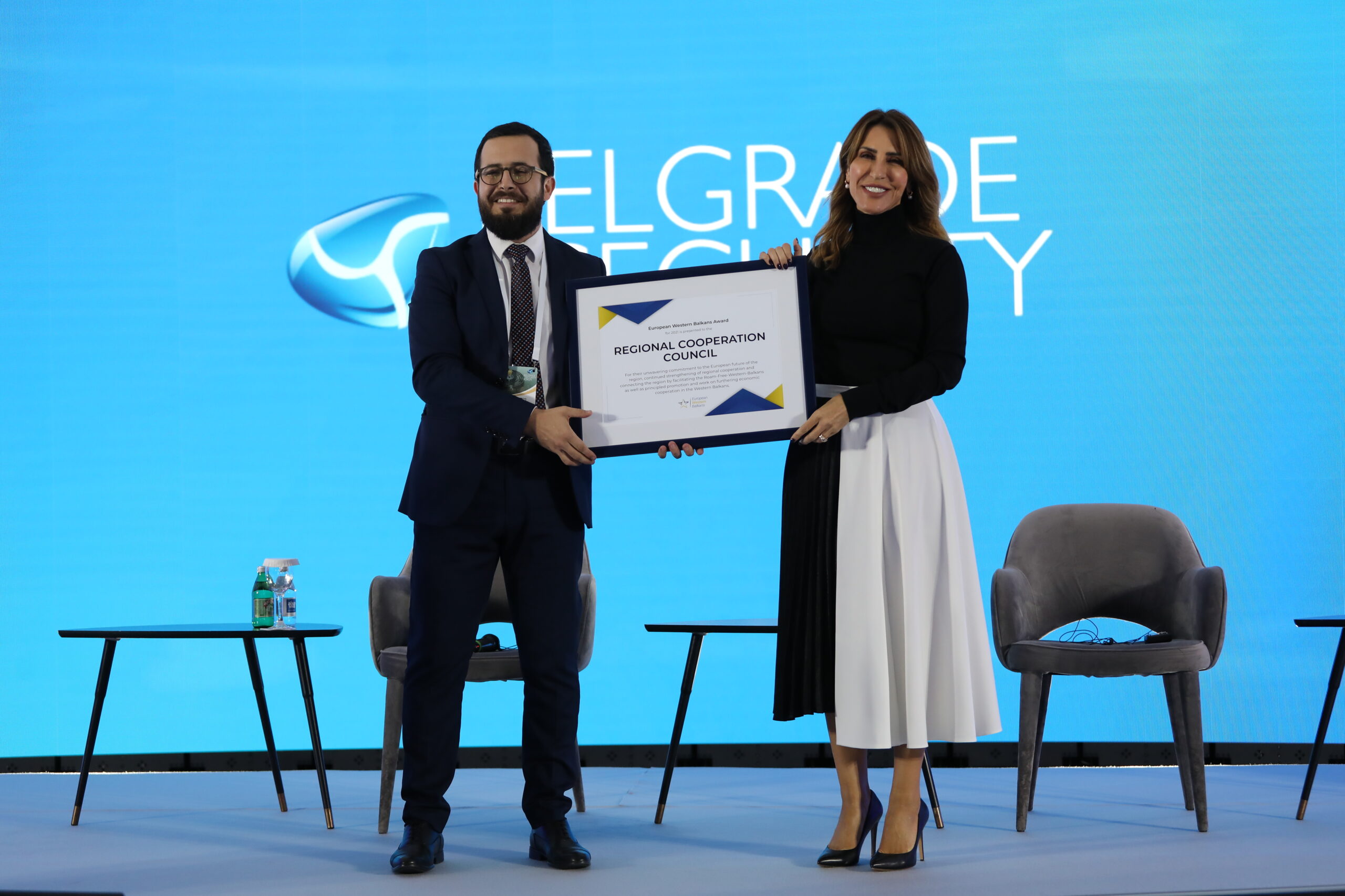 RCC Secretary General Majlinda Bregu, received the award on behalf of this organisation at a ceremony held at the margins of the Belgrade Security Forum.